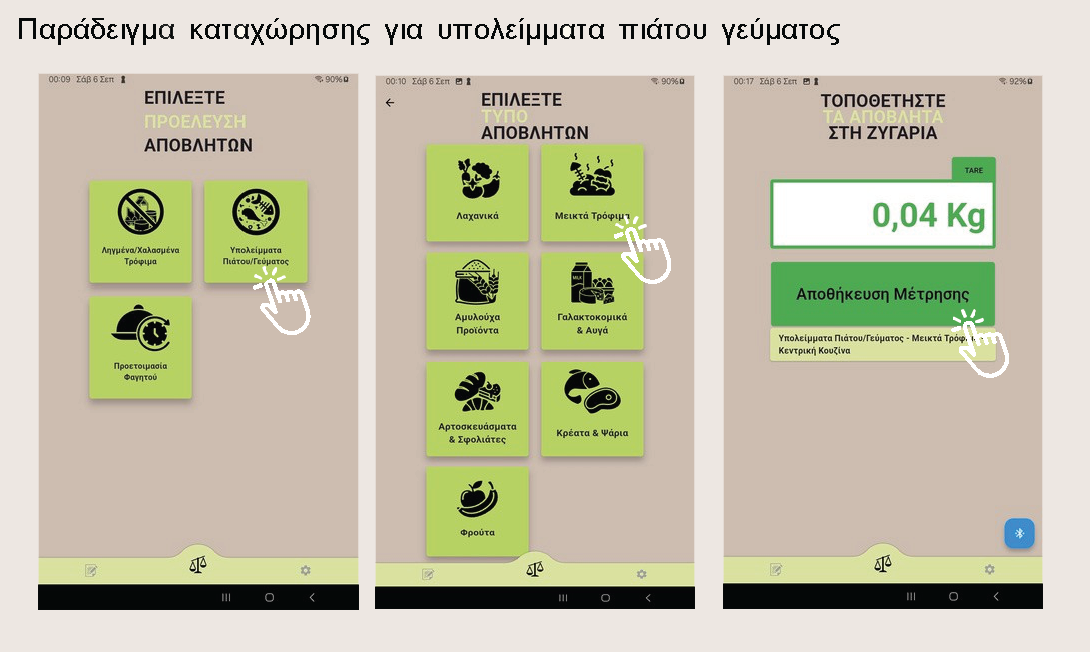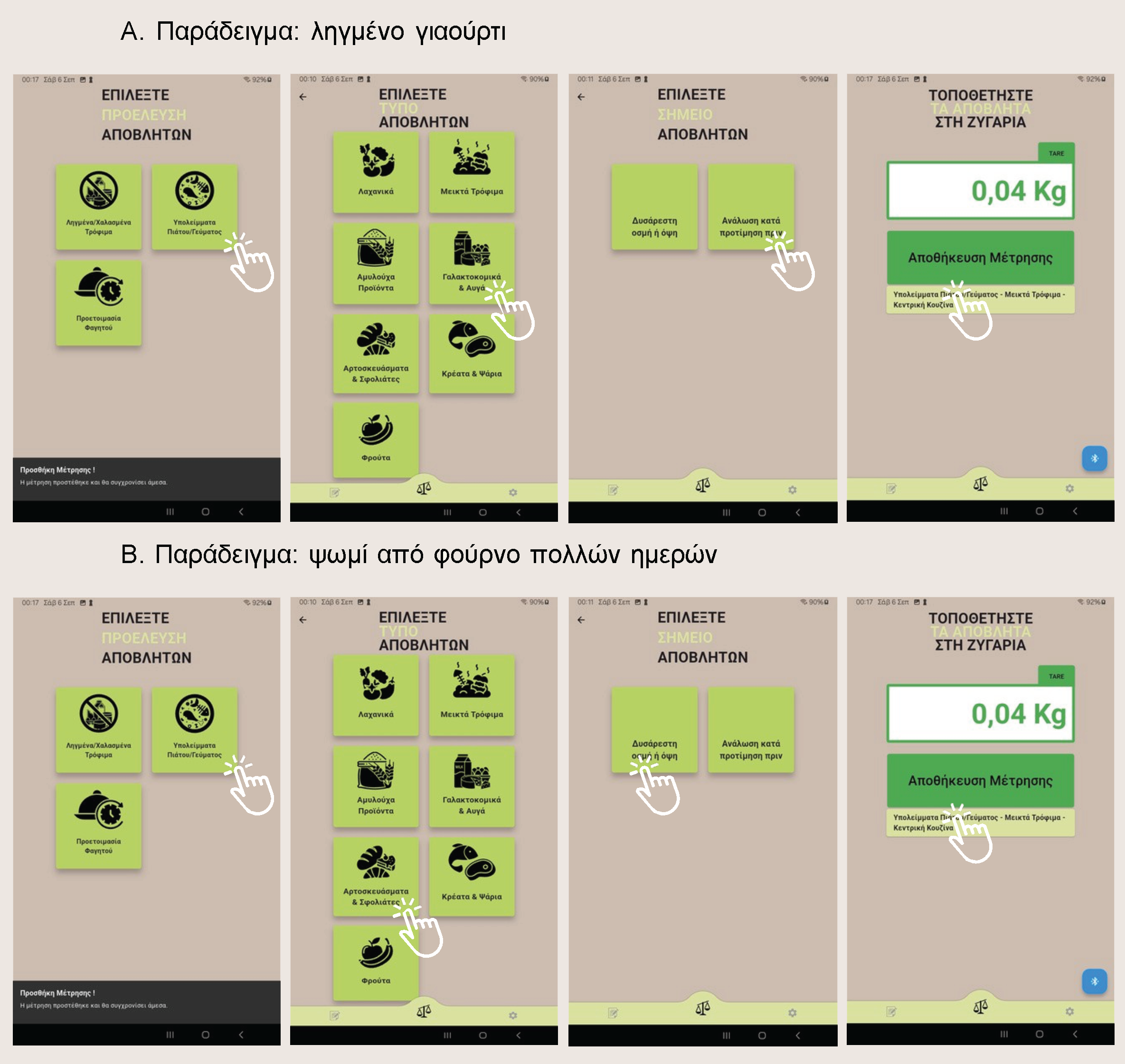 - Στην 2η οθόνη να επιλέξετε από έξι ομάδες τροφίμων ή τα μικτά τρόφιμα για τις περιπτώσεις που πετιέται κάποιο έτοιμο γεύμα ή ένα φαγητό που μαγειρεύτηκε κάποια προηγούμενη μέρα και δεν καταναλώθηκε στο σύνολό του.